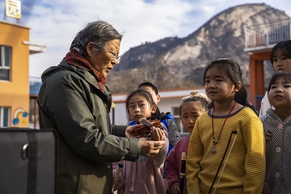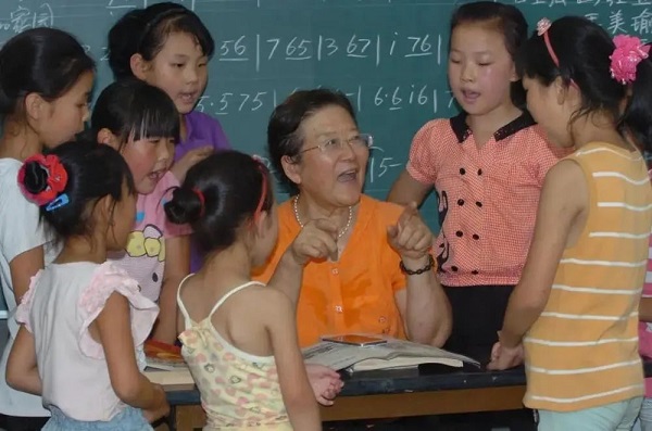 邓小岚在给孩子们上音乐课(2015年8月8日摄)。新华社发