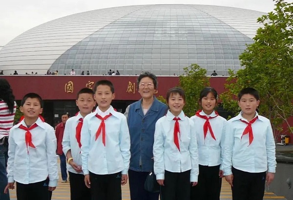 这是邓小岚和马兰小乐队成员在国家大剧院前的合影(2008年10月4日摄)。新华社发