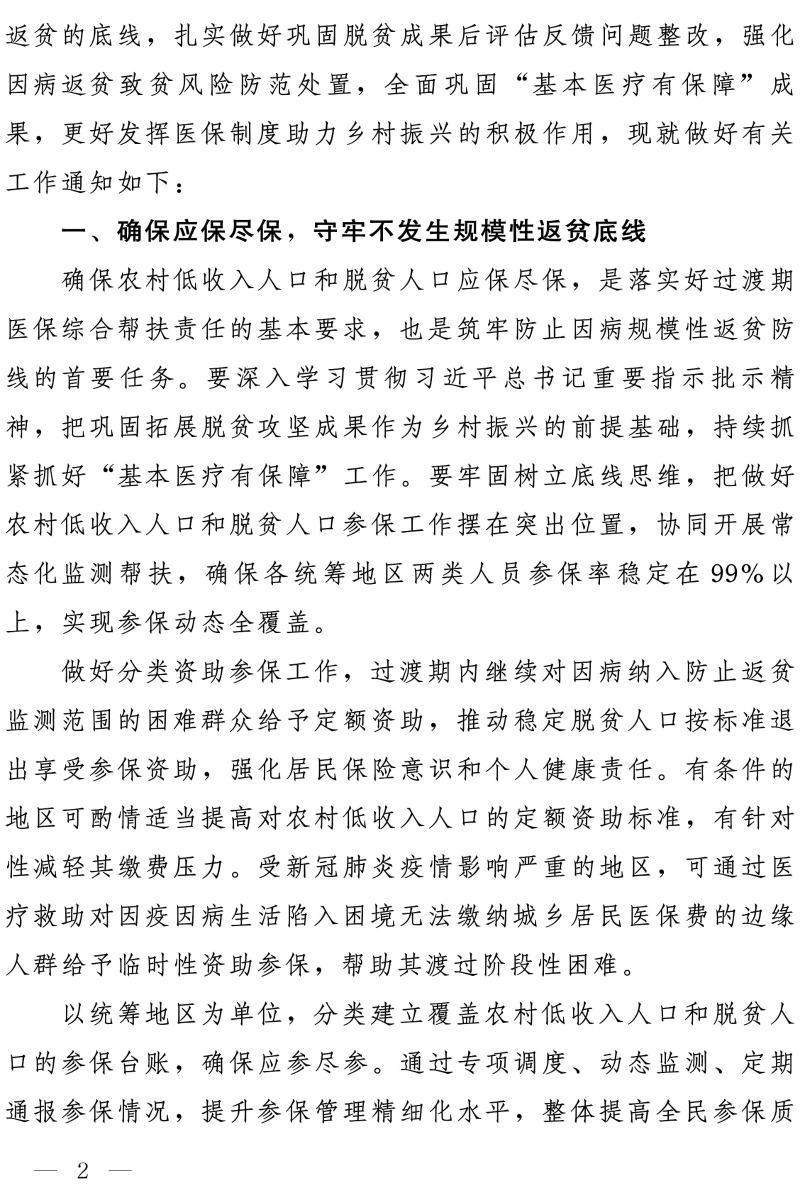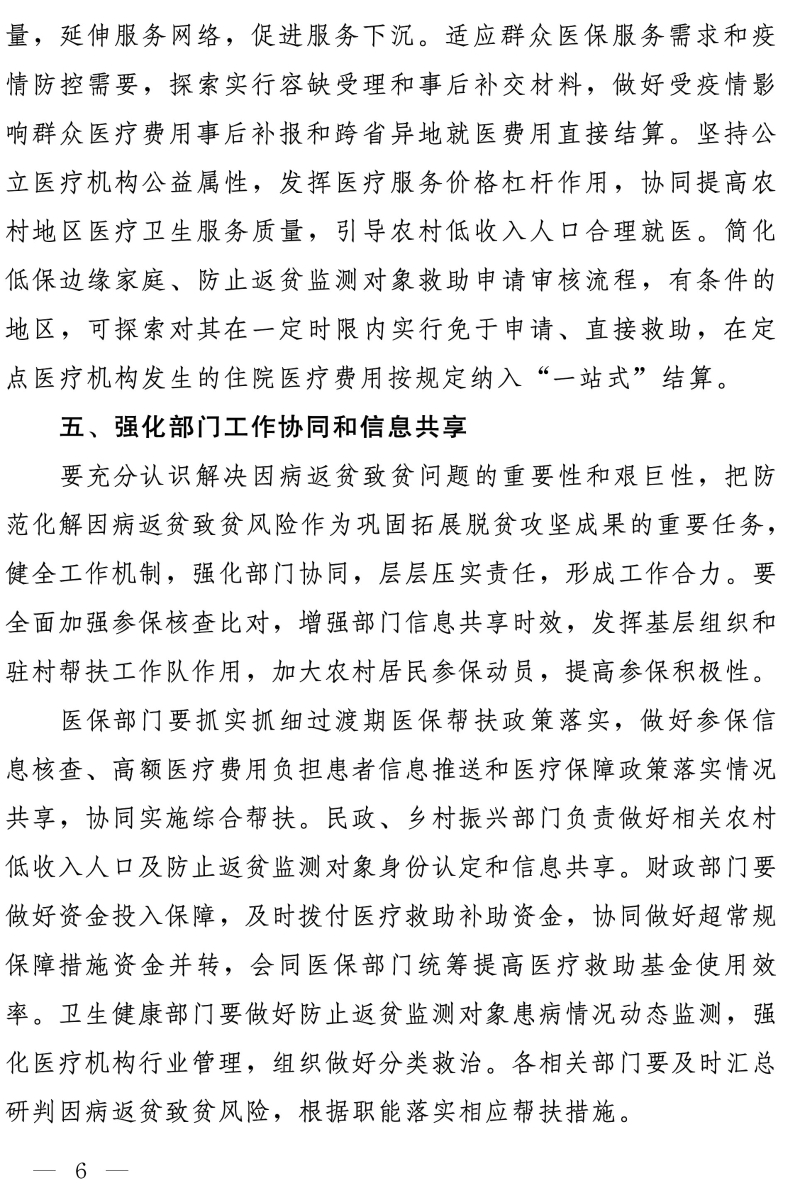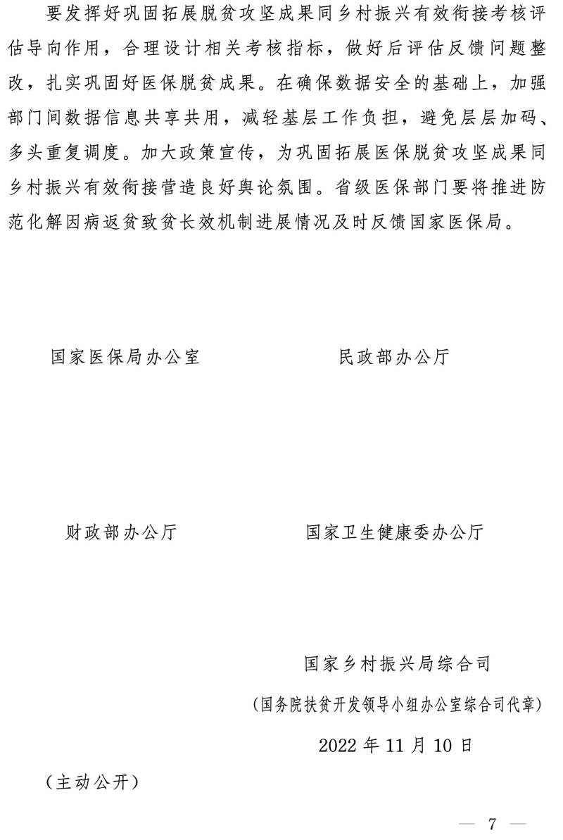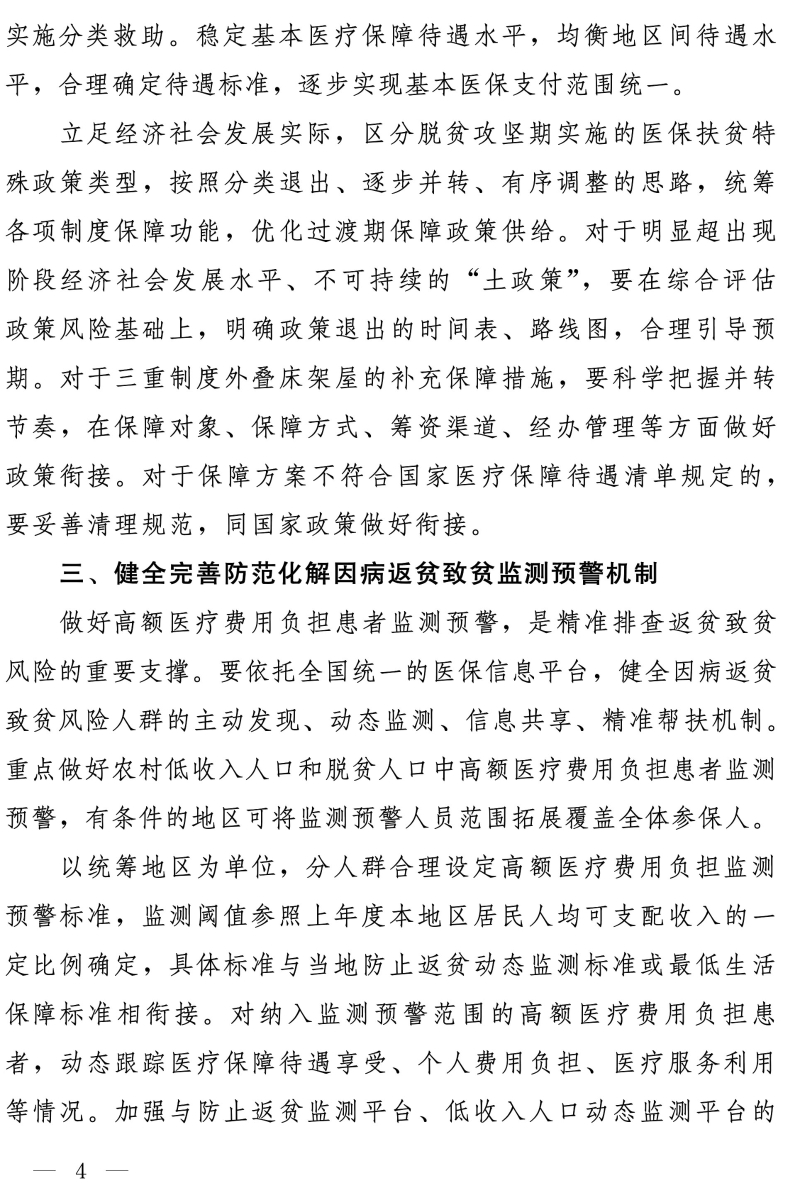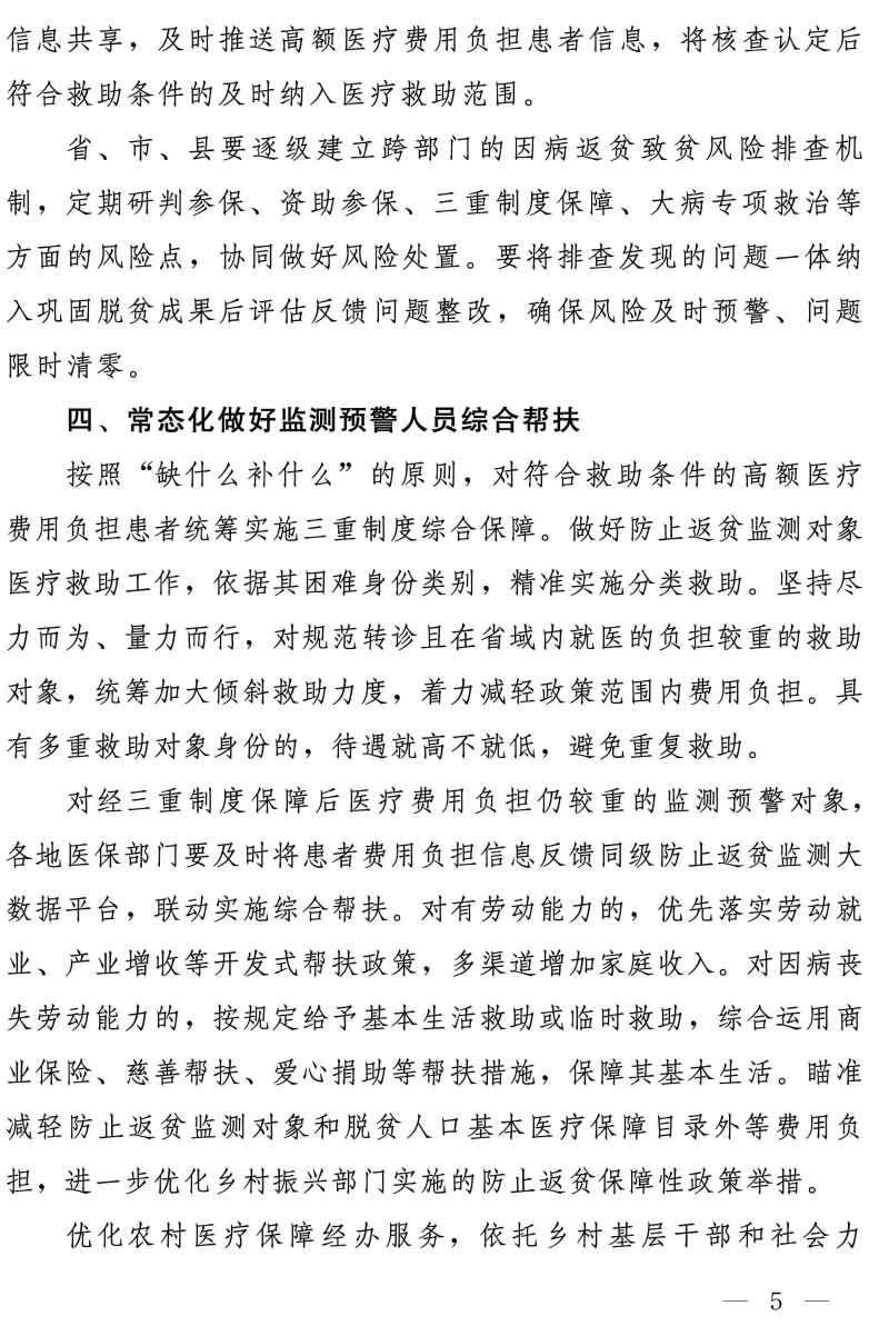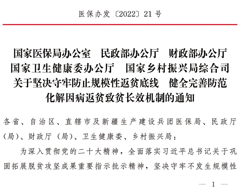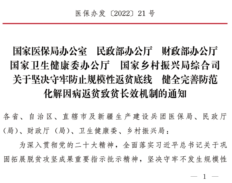 关于坚决守牢防止规模性返贫底线 健全完善防范化解因病返贫致贫长效机制的通知