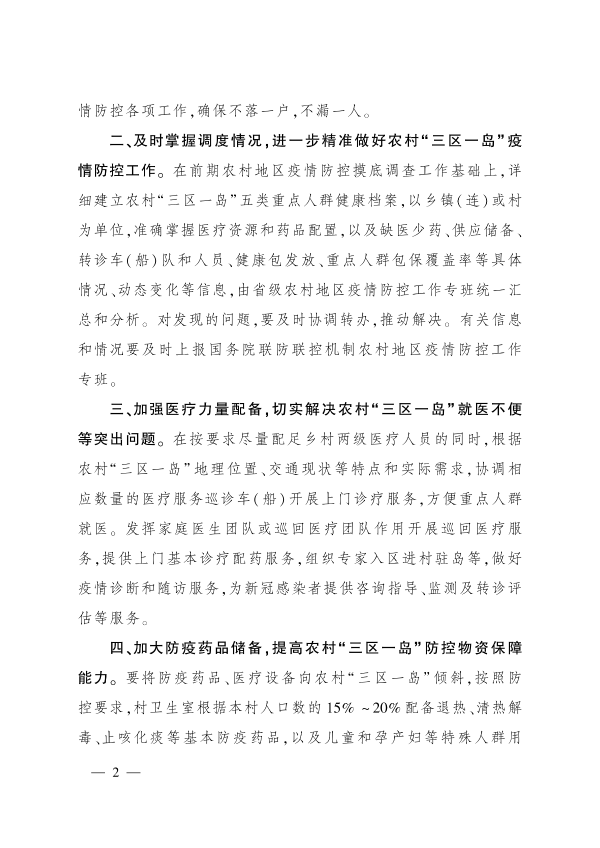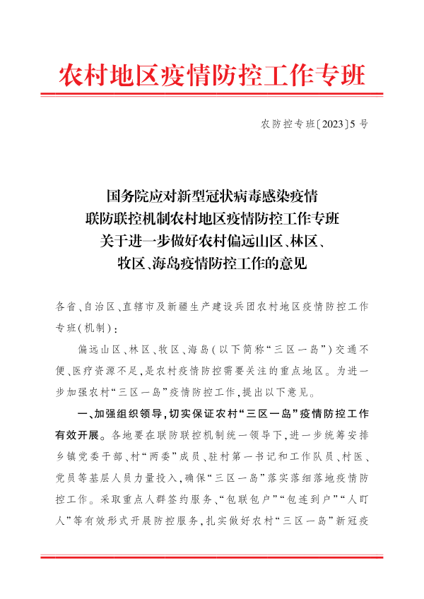 关于进一步做好农村偏远山区、林区、牧区、海岛疫情防控工作的意见