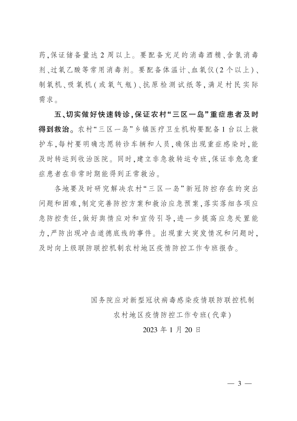 国务院应对新型冠状病毒感染疫情联防联控机制农村地区疫情防控工作专班